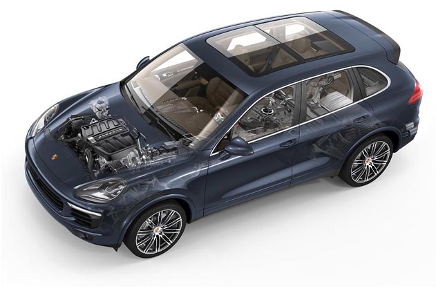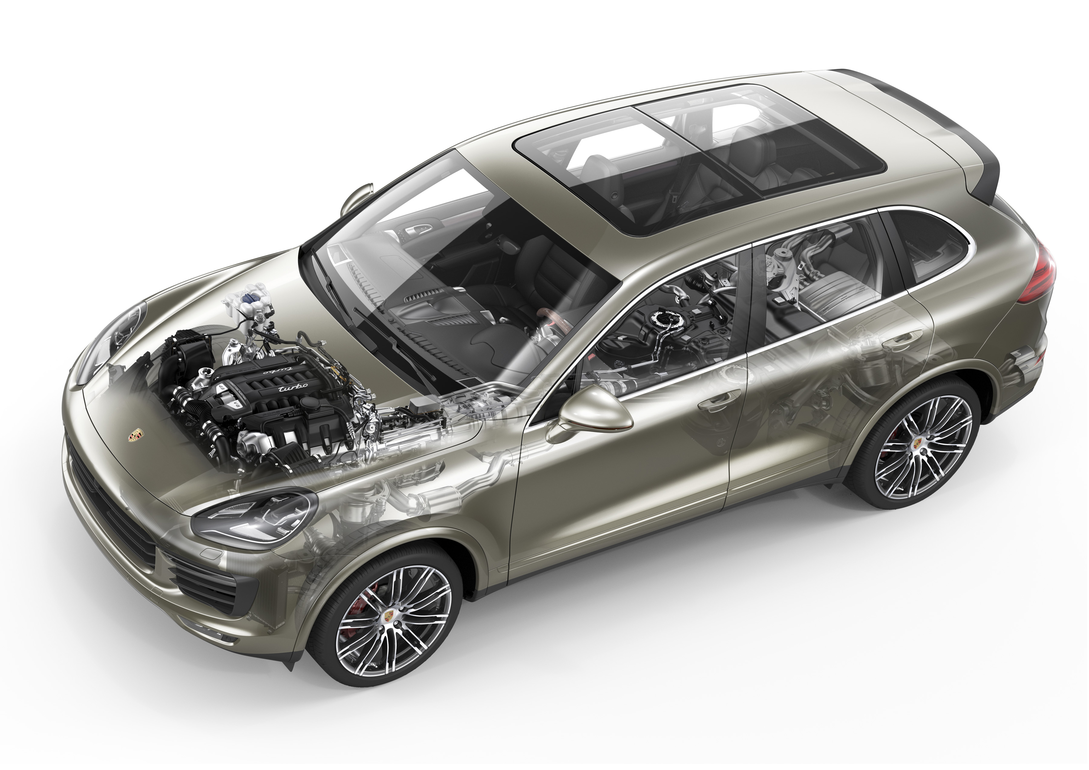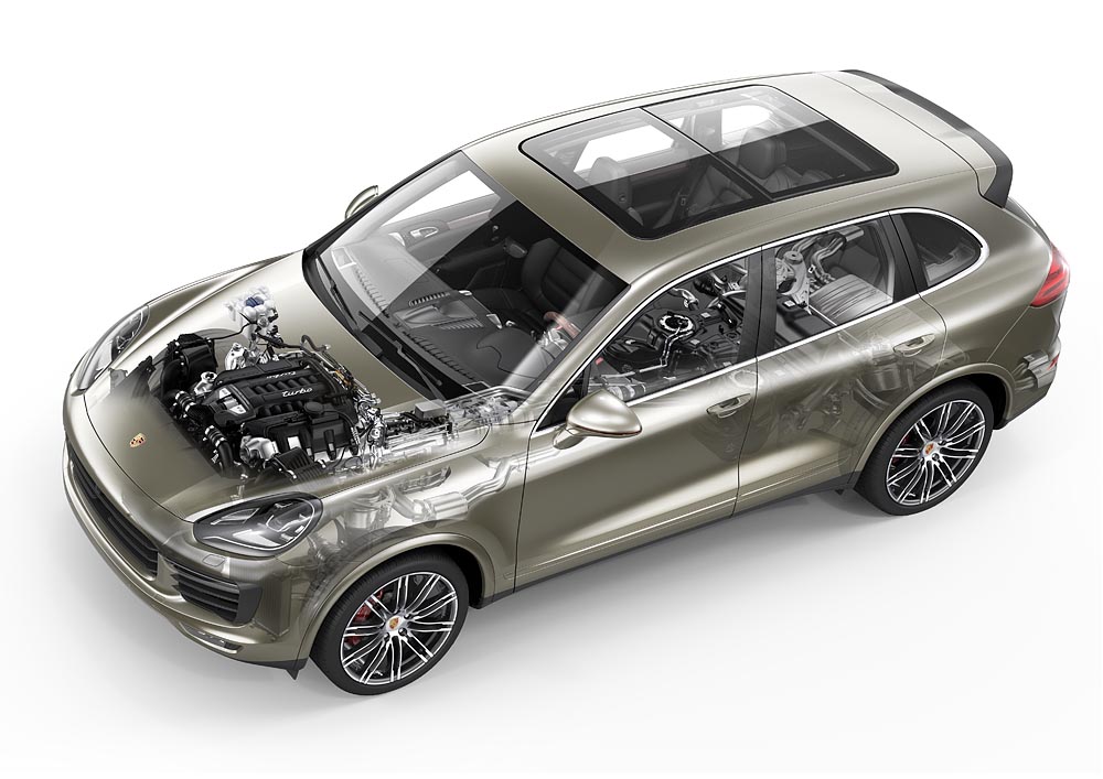 P14_0378 Porsche Cayenne S: 3.6-litre V6 biturbo engine with 420 hp