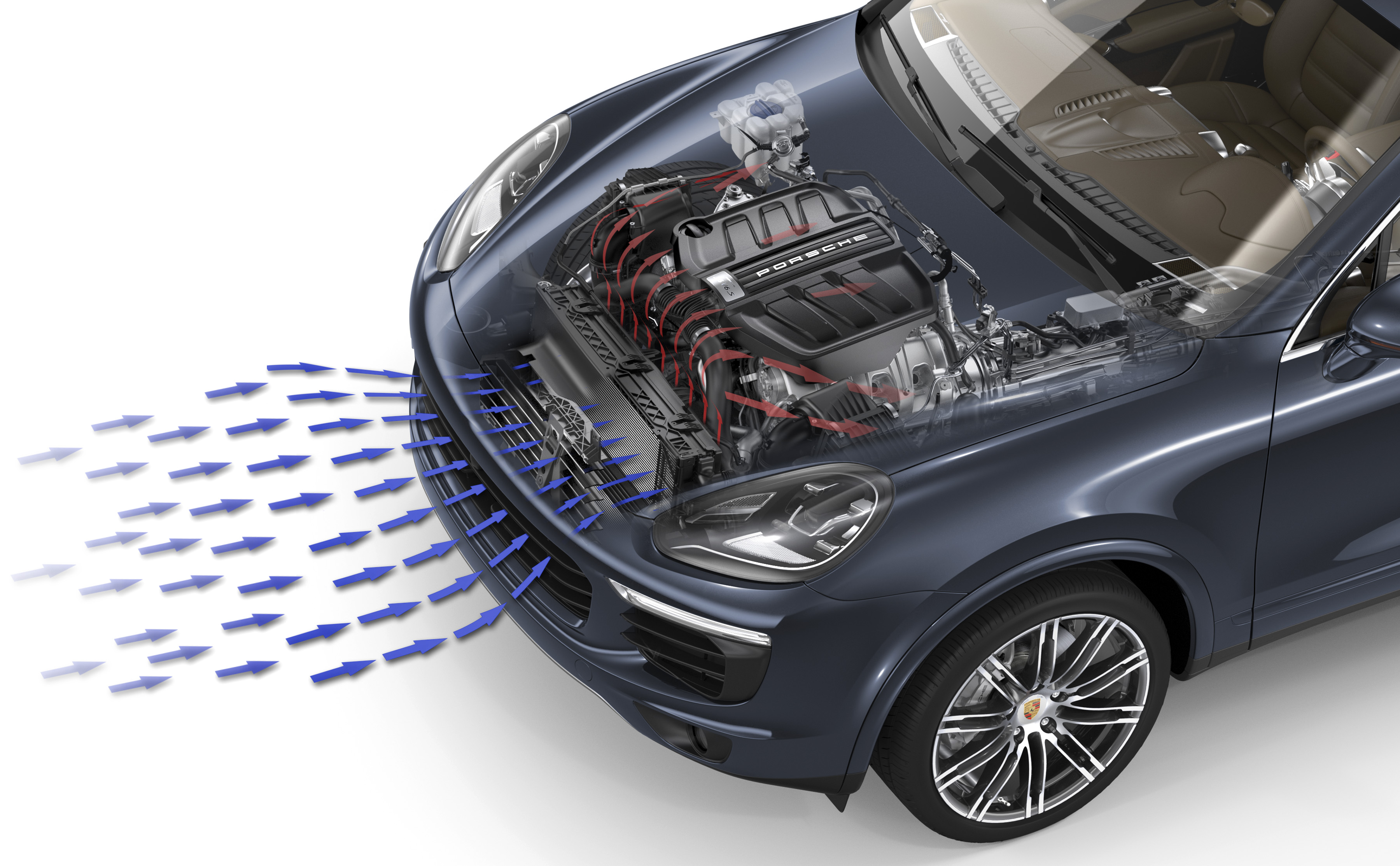 P14_0589 Porsche Cayenne: active cooling air flaps behind central air intake