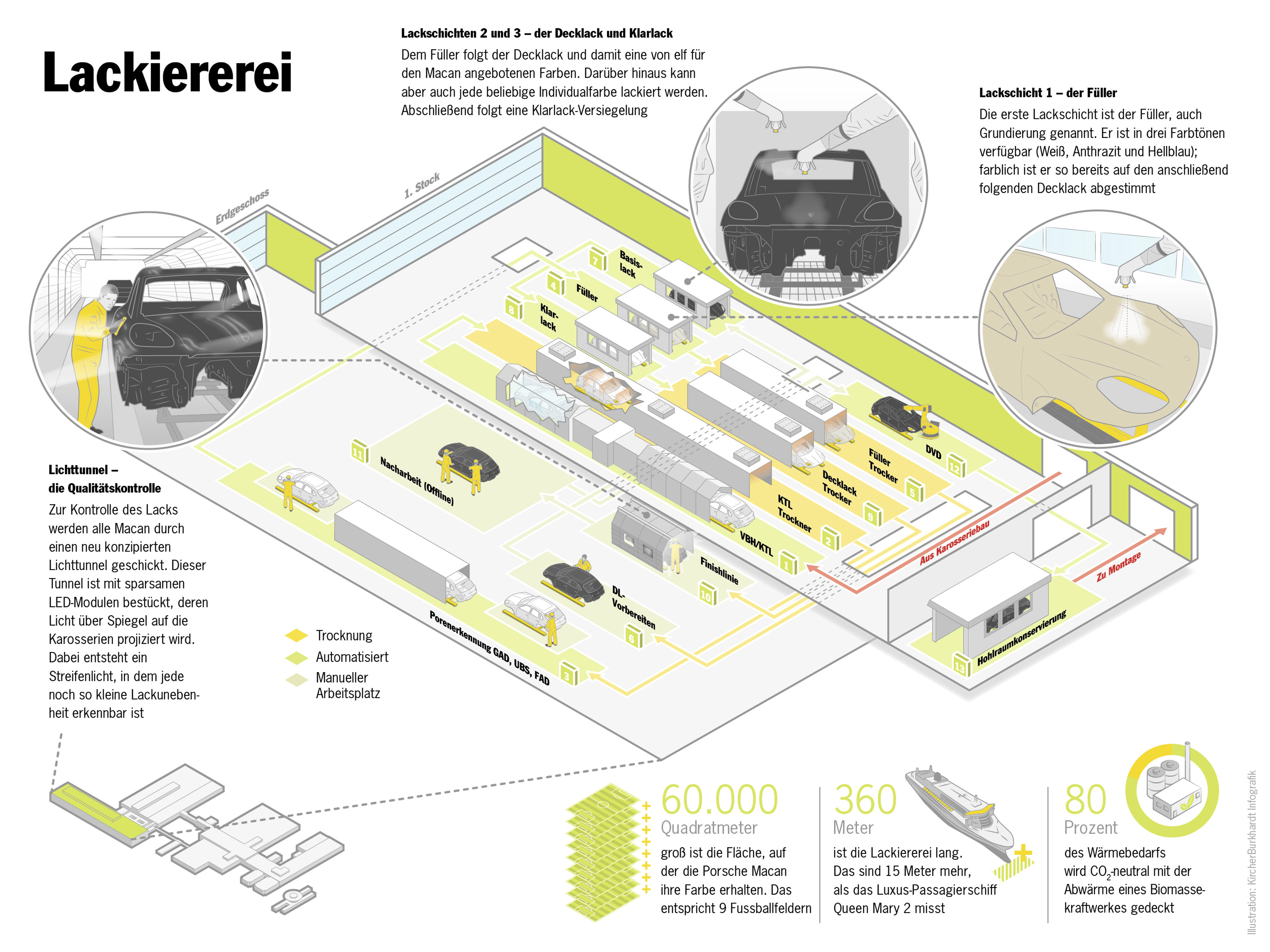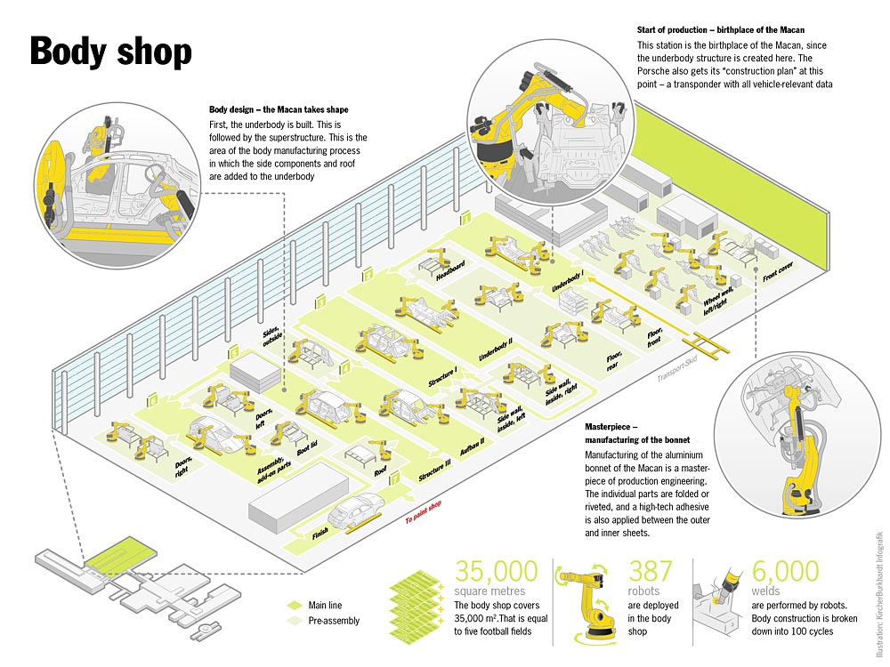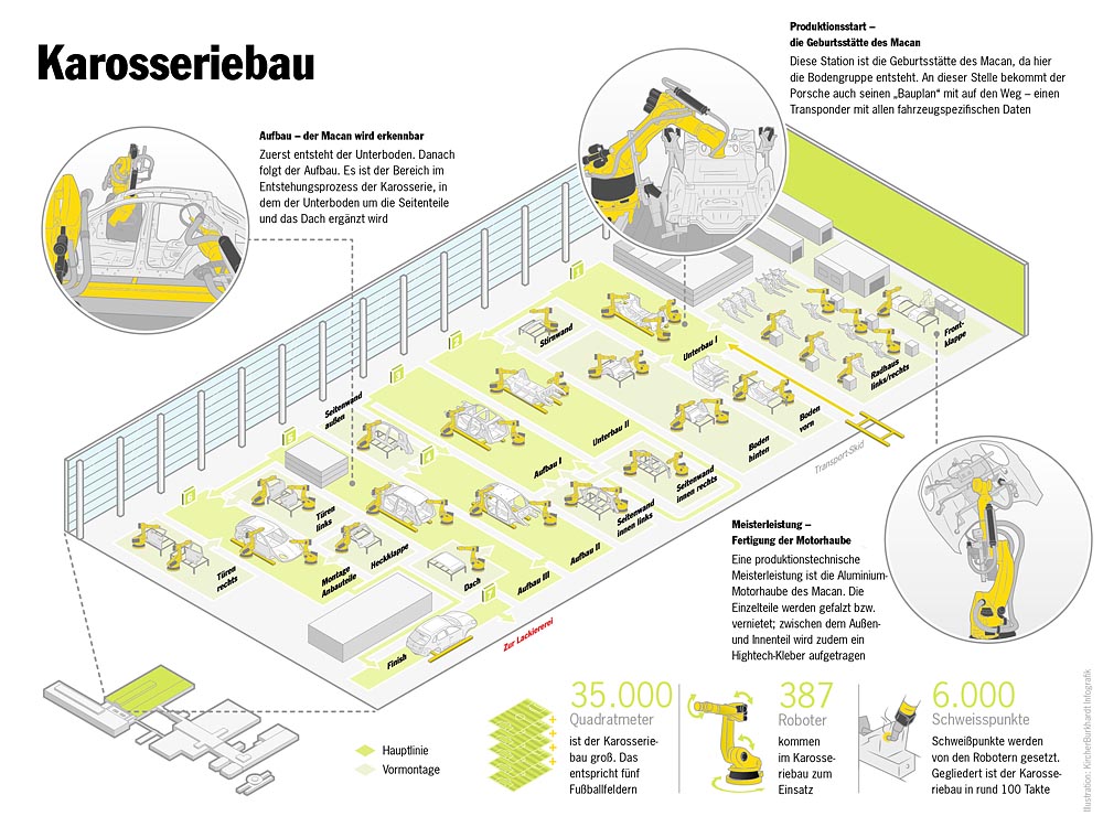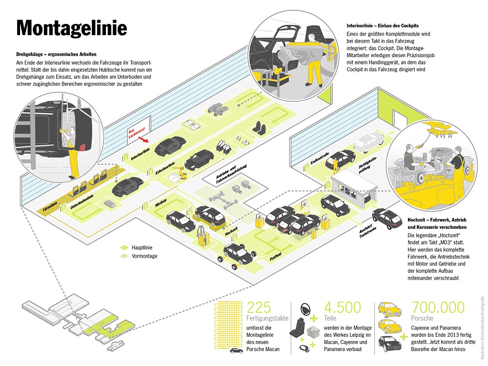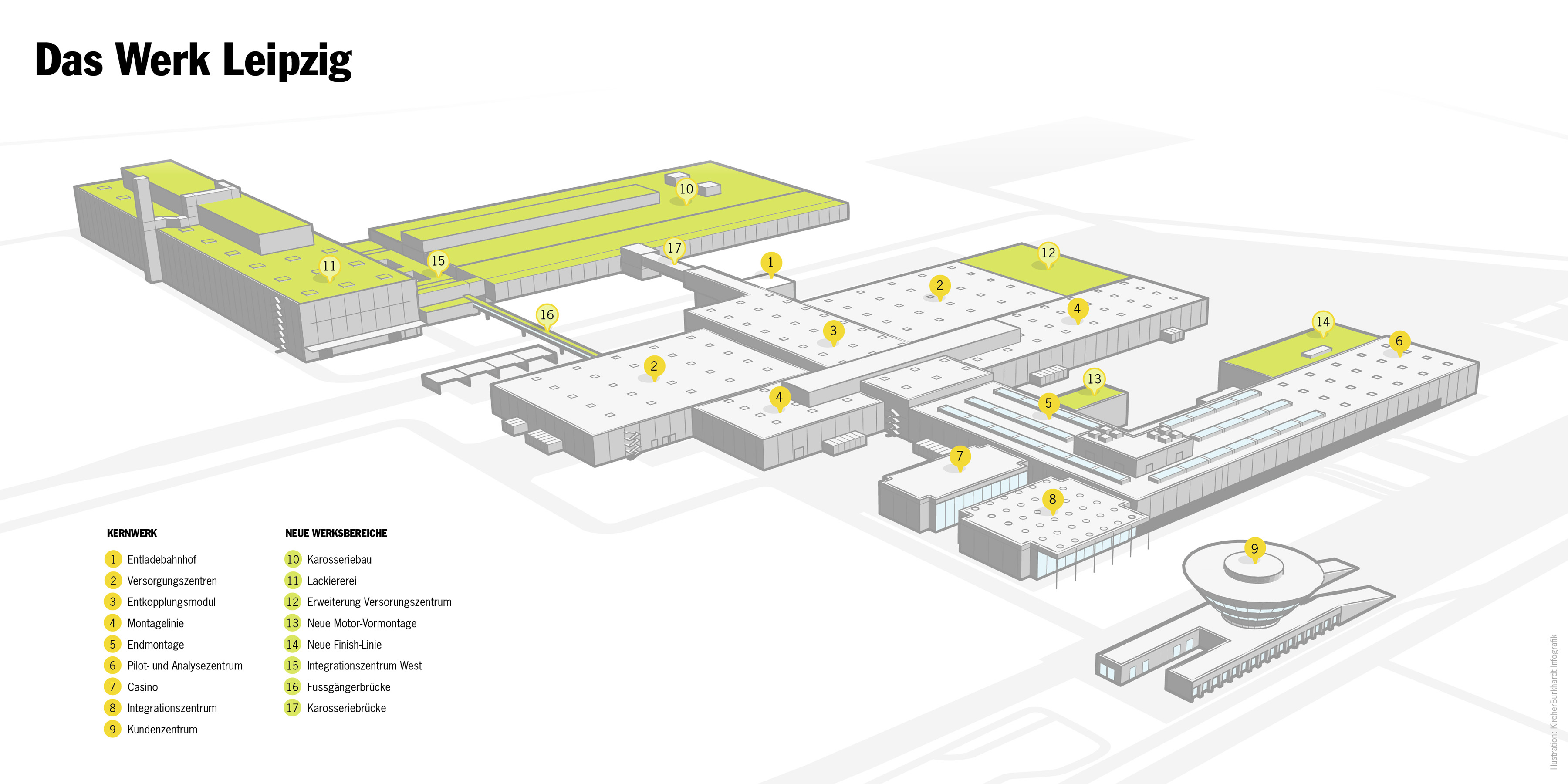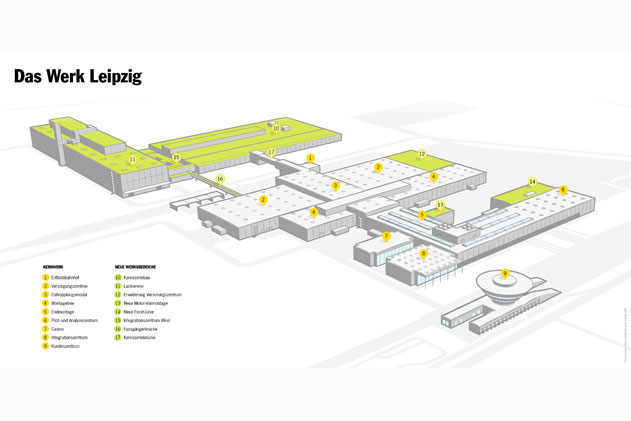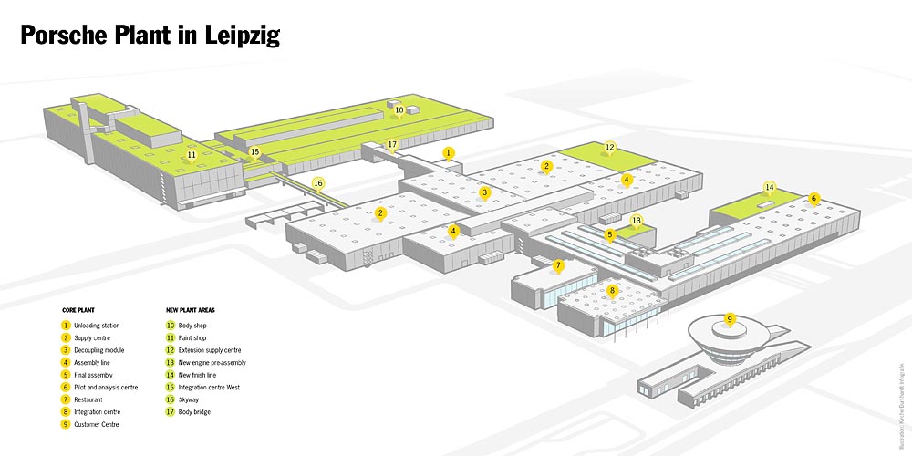 Usine Porsche de Leipzig : les zones marquées en vert ont vu le jour dans le cadre de l’extension de l’usine (English version)