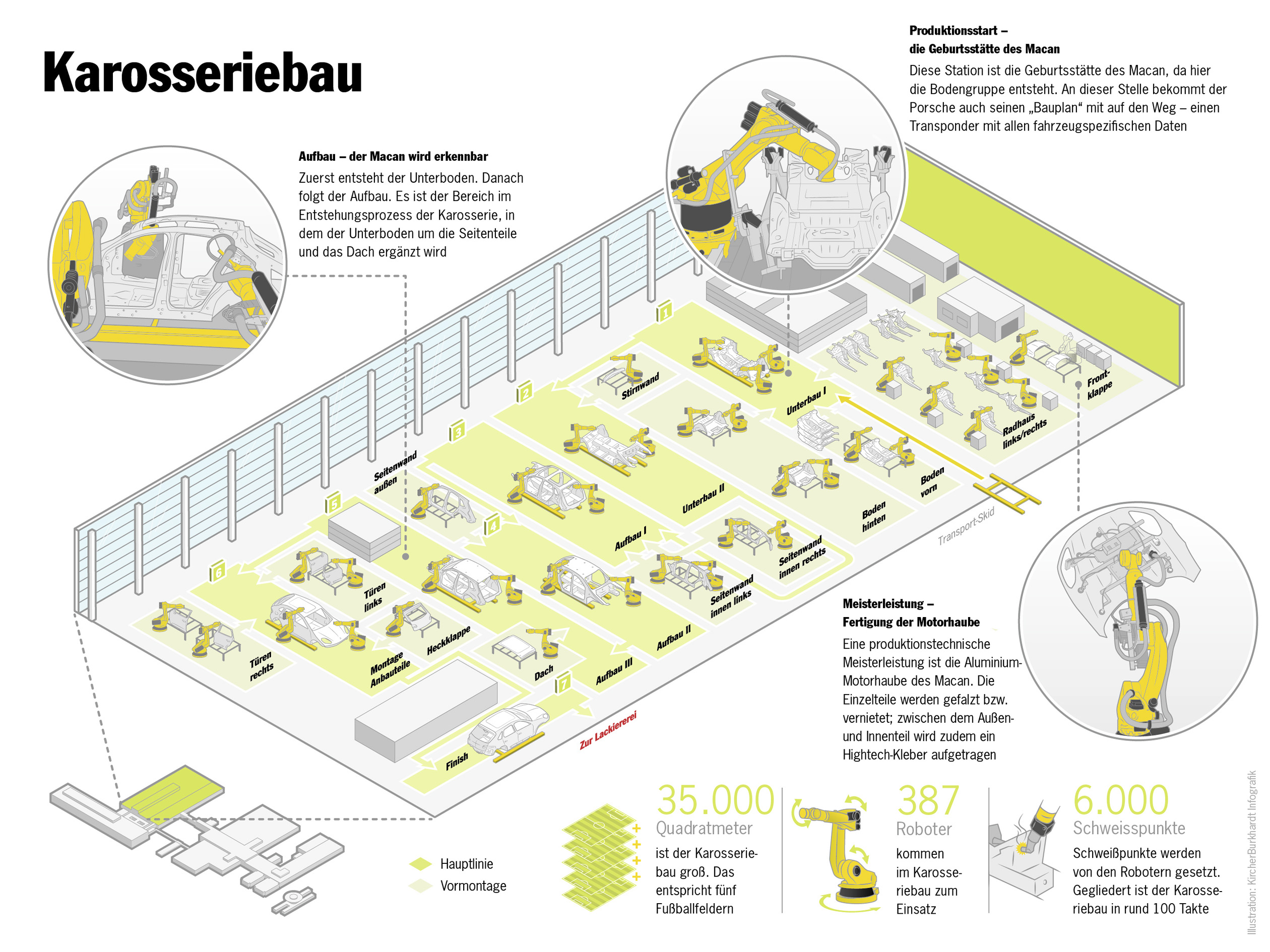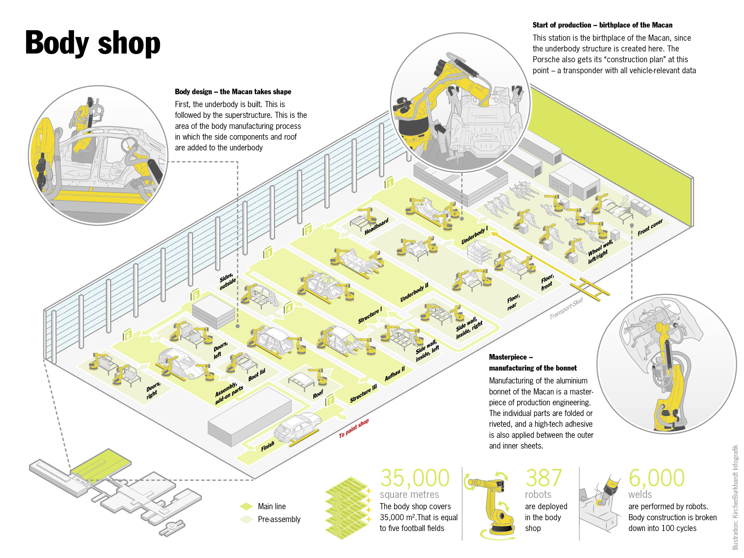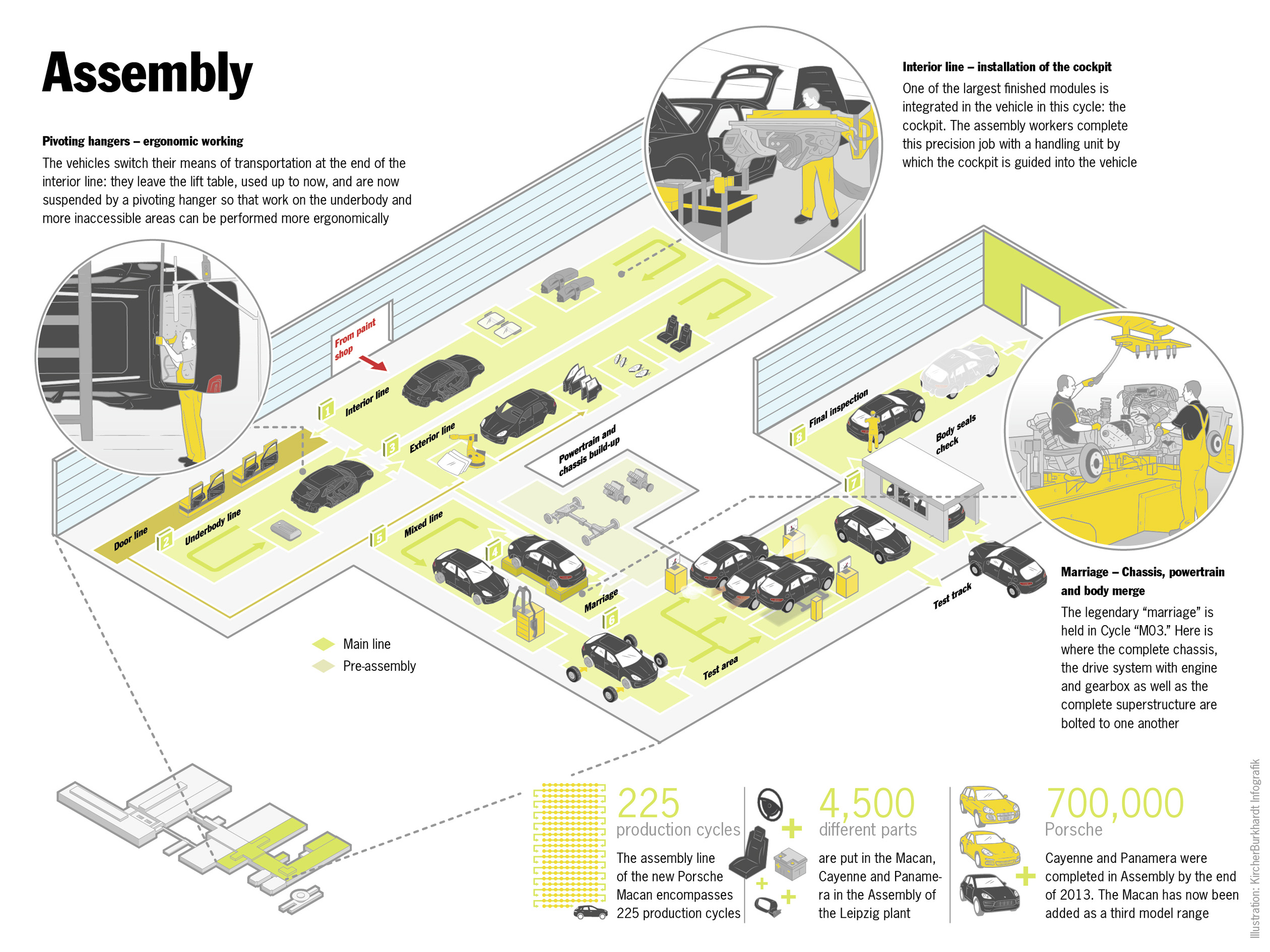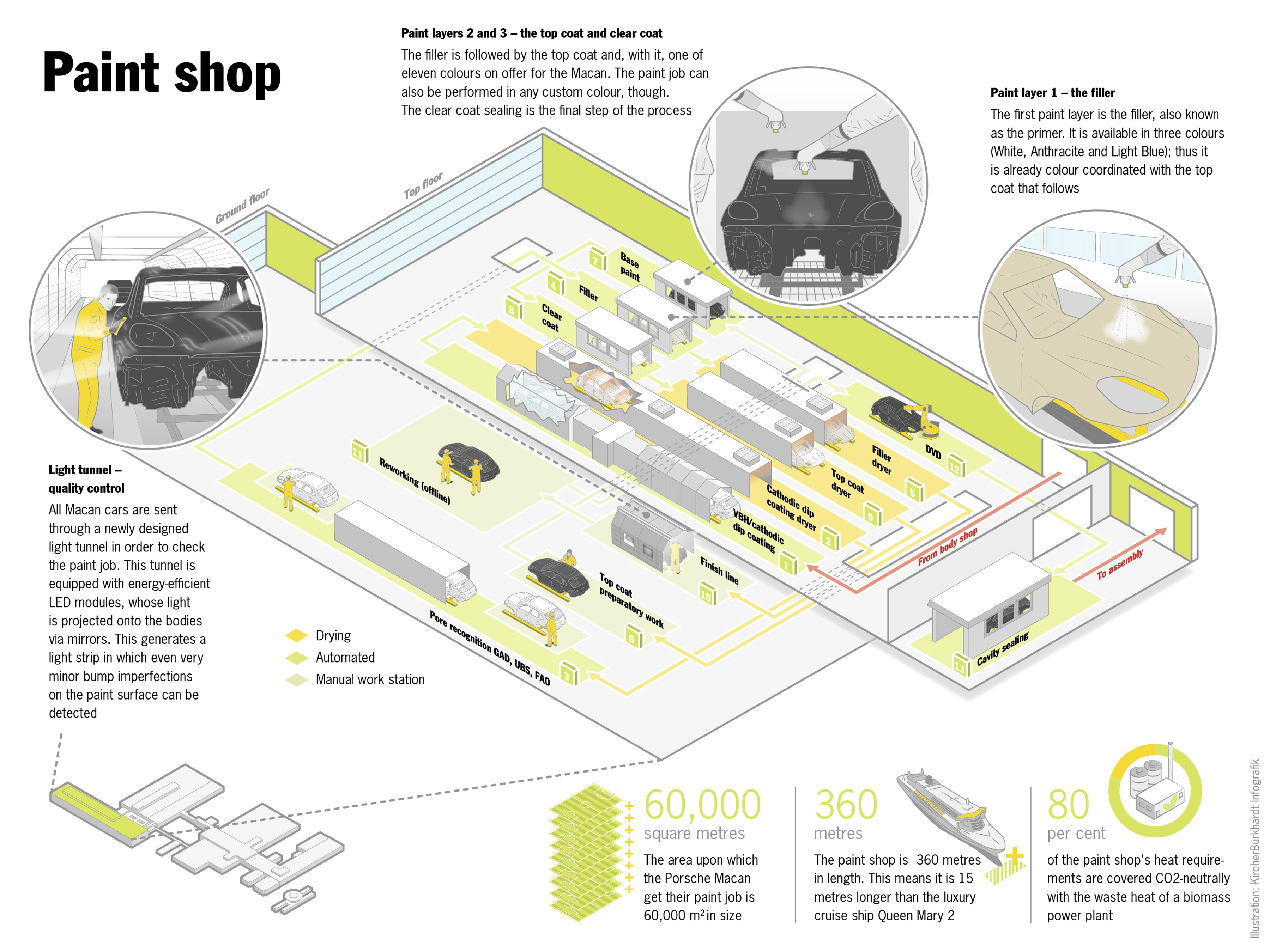 Usine Porsche de Leipzig : les zones marquées en vert ont vu le jour dans le cadre de l’extension de l’usine (English version)